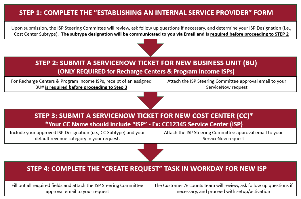 ISPs must be pre-approved by the ISP Steering Committee (comprised of individuals from Cost Analysis, Sponsored Projects Accounting, and Customer Accounts) as a service provider and authorized to bill other WashU departments for goods and services prior to providing such goods and/or services for the first time. Completion of this form will facilitate this review.